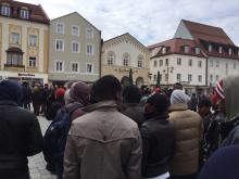 Nach dem Tod des 20-jährigen Flüchtlings Lamine Condeh in Passau und dessen Beerdigung in Hutturm (Lks. Passau), fand am Samstag, 17. März, um 14 Uhr am Stadtplatz in Deggendorf eine Mahnwache und eine Demonstration im Gedenken an den Toten und als Zeichen gegen inhumane Flüchtlingspolitik statt! Störungen durch Rechte wurden befürchtet (Bereits im Dezember 2017 hatte die AfD Deggendorf und Neonazis des 3. Wegs eine Demonstration (am 21.12.17) von Geflüchteten in Deggendorf rassistisch begleitet und die Teilnehmer*innen drangsaliert. Im Januar 2018 hatte Der 3. Weg mit einem hetzerischen, rassistischen Flugblatt gegen den neuen Flüchtlingshelferkreis in Deggendorf mobil gemacht). Obwohl rechte Störungen schließlich ausblieben, berichteten die zahlreich versammelten Geflüchteten bei der emotionalen Trauermahnwache vermehrt von alltäglichen rassistischen Anfeindungen und Übergriffen, denen sie in Deggendorf durch die Bevölkerung ausgesetzt sind und ihren großen Ängsten diesbezüglich.