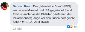 Manche Anhänger gehen deshalb sogar soweit zu meinen, dass der IS eine Erfindung bzw. Inszenierung (jüdisch gelenkter) amerikanischer und israelischer Organisationen sei, um Europa mittels islamischen Terrors zu zersetzen. Die Thesen, dass Juden die Ingenieure der "muslimischen Masseneinwanderung" und des "Genozids an den christlichen Europäern" seien, werden gerne durch das Online-Portal „Die Freie Welt“ verbreitet. Die Seite ist Teil eines Vereinsnetzwerks „Zivile Koalition“, welches von Beatrix von Storch und ihrem Mann Sven von Storch betrieben wird (Die Zeit. 6). Die dort publizierten antisemitische Haltungen werden auch in der AfD Passau immer wieder offen vertreten.