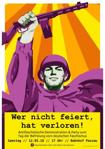 Die Demonstration startet mit einer Auftaktkundgebung am Europaplatz (am Bahnhof) in Passau um 17:00 Uhr. Nach der Demonstration durch die Innenstadt klingt der Abend mit einer Abschlusskundgebung und der Möglichkeit die Befreiung Deutschlands von der NS-Herrschaft noch ordentlich zu feiern aus. Wir freuen uns auf zahlreiche Teilnehmer*innen.