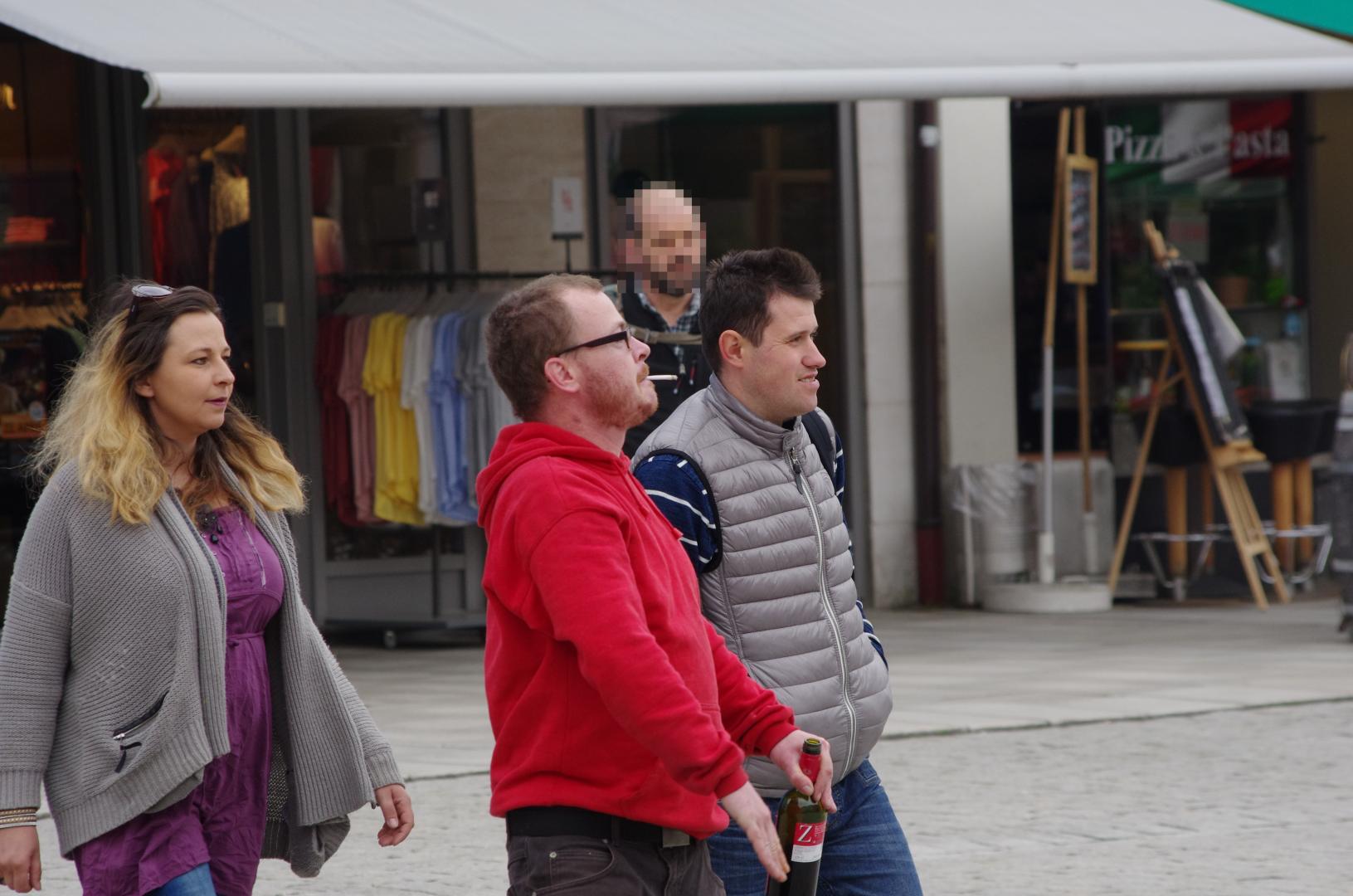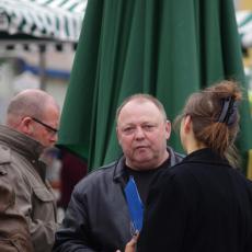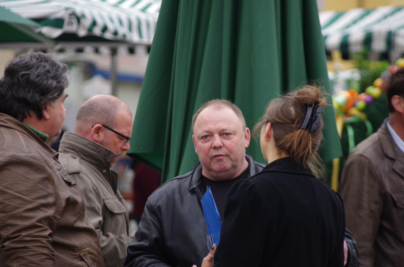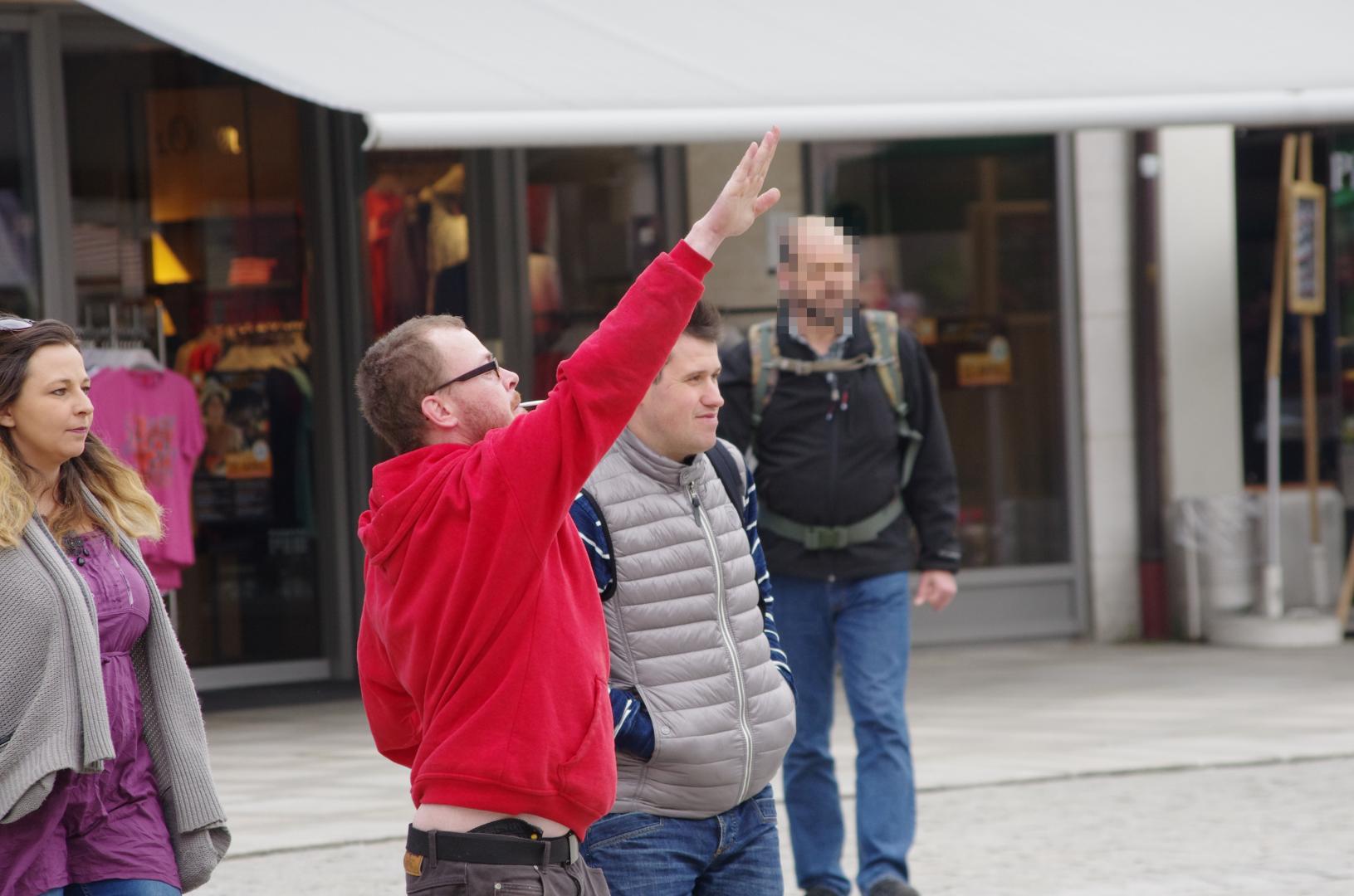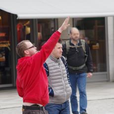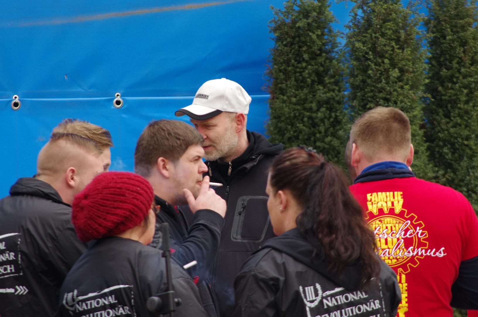 Etwas abseits der „III. Weg“-Kundgebung beobachtete Alfred Steinleitner (NPD-Bezirksvorsitzender Niederbayern) die Situation. Ein Begleiter von Steinleitner filmte regelmäßig die Gegenkundgebung ab.