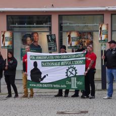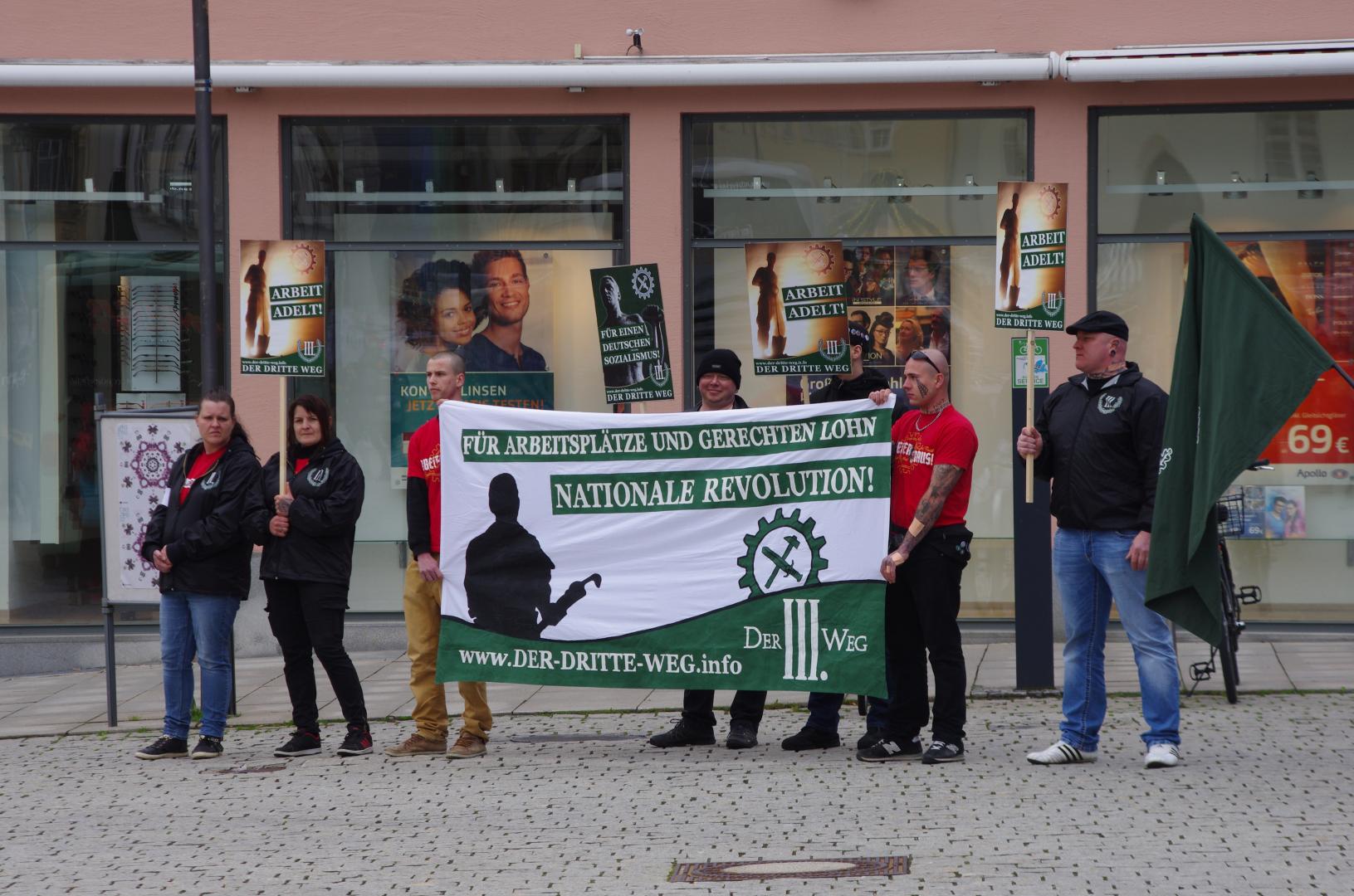 Die neonazistische Partei „Der III. Weg“ demonstrierte am 9. April 2016 in Deggendorf. Unter demo Motto „Kapitalismus zerschlagen – für einen deutschen Sozialismus“ versammelten sich ca. 25Teilnehmer*innen um für ihre 1. Mai-Demonstration in Plauen zu werben. Versammlungsleiter und Hauptredner war Walter Strohmeier (Lam).