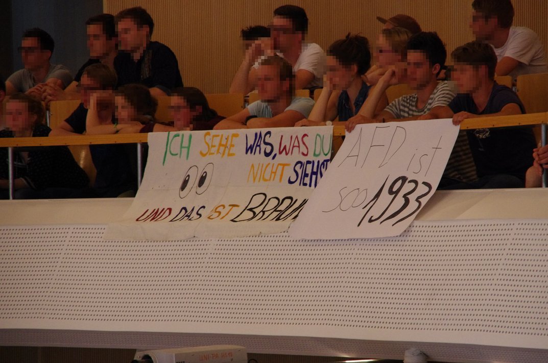 Am Abend des 12.6.2017 wurden bei einer Podiumsdiskussion an der Universität Passau Student*innen und weitere Demonstrant*innen durch Polizeikräfte unter Androhung unmittelbarem Zwangs und Strafverfolgung aus dem Audimax geräumt. Sie hatten die Redebeiträge des bekannten rechtsextremen AfD-Mitglieds Stefan Möller friedlich, durch lauten Applaus und Jubelrufe nachhaltig übertönt. Dieser war Gast bei einer Podiumsdiskussion der "Passauer Politiktage" zum Thema "Die 4. Gewalt – Die Macht der Medien", was bereits im Vorfeld durch die Hochschulgruppe LUKS in einem offenen Brief kritisiert wurde.