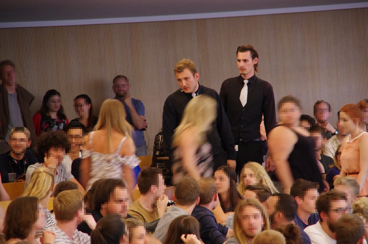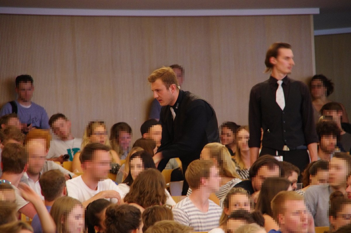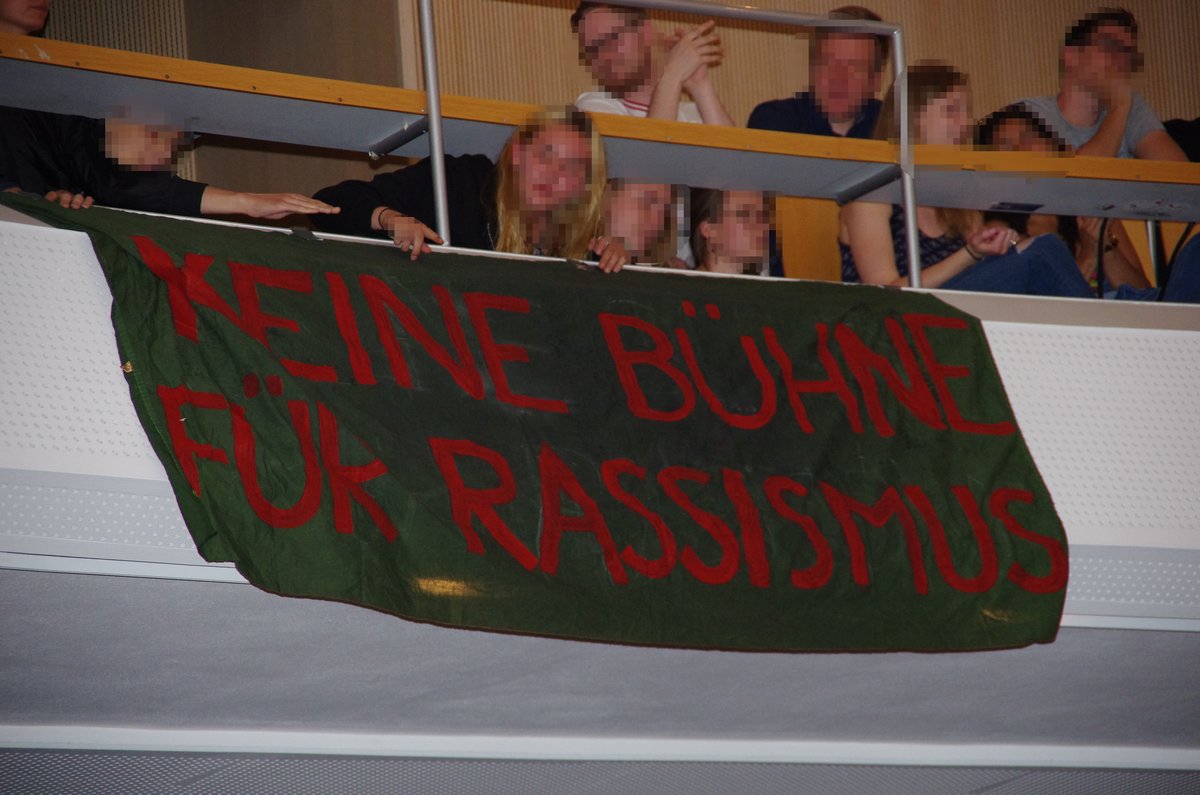 - Rechtsextreme Besucher*innen werden toleriert, die kritischen Teile der eigene Studierendenschaft des Saales verwiesen