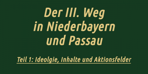 Dies wollen wir zum Anlass nehmen, um in einem detaillierten, mehrteiligen Artikel die Ideologie, Struktur und Aktionsweise des III. Weg in Niederbayern näher zu betrachten. Der folgende Artikel widmet sich primär dem Stützpunkt Ostbayern, zeigt aber auch die überregionalen und internationalen Kontakte des III. Wegs auf. Dieser Teil widmet sich vor allem der der Ideologie, sowie den Inhalten und Aktionsfeldern der neonanzistischen Partei.