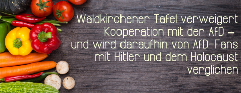 *Update* Am 09. März 2018 berichtete auch die PNP über den Fall. Im Artikel "AfD-Spende abgelehnt: Shitstorm gegen zwei Tafeln in der Region" wird erklärt, der Vorsitzende der AfD Passau, Ralf Stadler, habe den Tafeln eine Palette mit 600 Gläsern Tomatensuppe angeboten, unter der Voraussetzung, dass er die Spendenübergabe medial begleiten und PR-technisch für die Partei nutzen könne. Die angeschriebenen Tafeln in Waldkirchen und Hutthurm sowie Reiner Haupka, Vorsitzender des Tafel-Landesverbands Bayern wollten sich jedoch "politisch nicht vor den Karren spannen lassen". Stadler kündigte an die Tomatensuppe nun persönlich verteilen zu wollen. Ob er bei der Verteilung auf die selbe rassistische Differenzierung von Bedürftigen nach Nationalität zurückgreift, wie es beispielsweise die "Deutsche Winterhilfe" der Neonazis vom III. Weg tut, bleibt offen aber erahnbar.