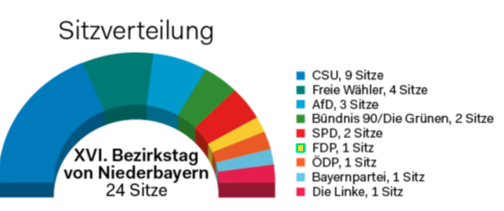 Die AfD erhielt bei den Niederbayerischen Bezirkstagswahlen 2018 12,9% der Stimmen und drei Mandate: