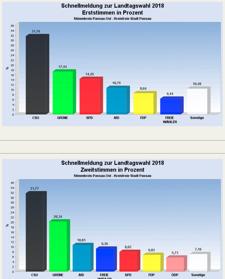 Passau Ost: 13,4% (Zweitstimmen), 14,2% (Erststimmen)
