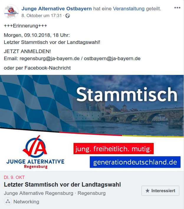 Der Oktober 2018 waren geprägt durch die bayerische Landtags- und Bezirkstagswahl. Doch auch andere bekannte Organisationen des extrem rechten ostbayerischen Netzwerks zeigten sich in diesem Monat besonders aktiv.
