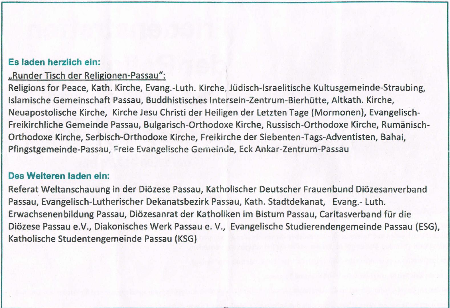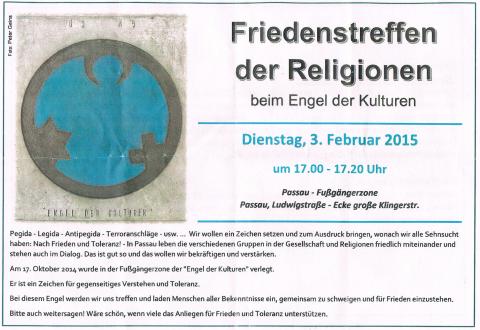 Liebe Organisator*innen und teilnehmende Organisationen der Kundgebung „Friedenstreffen der Religionen beim Engel der Kulturen“ in Passau am Dienstag den 03. Februar 2015.